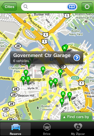 I live in Beacon Hill, where owning a car is both expensive and difficult. As such, I have two RFID cards in my wallet – my monthly MBTA pass and my Zipcard. Zipcar finally released their iPhone application, which although not as exciting as made out to be (no initial unlocking of the car from your phone, but I do enjoy surreptitiously honking the horn while my wife is driving), does provide a very convenient way of getting a car when you need it last minute. Their website is actually very nice too, and makes finding and booking a car surprisingly easy — I particularly like how they’ve implemented the calendaring. The car sharing itself is also great. $6.13/hour, all-inclusive, for a Prius just 2 blocks from my apartment is very compelling. The insurance setup is less than ideal (only state minimums), and it depends on the goodness of others to keep the car in decent condition, but I’ve had no serious problems as yet.